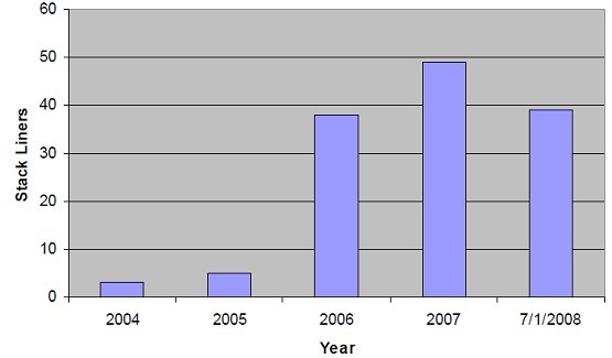 (1)、從國(guó)內(nèi)燃煤電廠脫硫煙囪防腐蝕現(xiàn)狀來(lái)看,由于防腐蝕方案及施工質(zhì)量控制等原因,已經(jīng)給電力行業(yè)帶來(lái)了數(shù)十億元人民幣的經(jīng)濟(jì)損失,到了必須盡快解決的刻不容緩的程度;