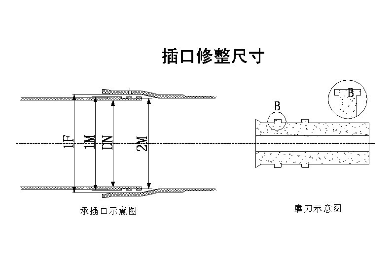 磨刀 (Φ130)凸輪 B特性 | 公稱直徑 DN | 模具外徑 1F(不含薄膜) | 標(biāo)準(zhǔn)承插口直徑配合間隙(mm) | 插口外徑1M (不含石臘樹脂 ) | 插口溝槽外徑2M (不含石臘樹脂) | 承插口 直徑 配合間隙修整范圍 | 插口溝槽修整周長( Q 為模具承口無薄膜時的實(shí)測周長) | “ O”型密封圈內(nèi)徑 A | 密封圈截面直徑 B |